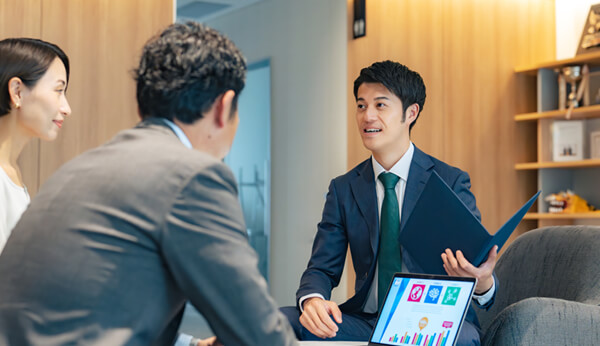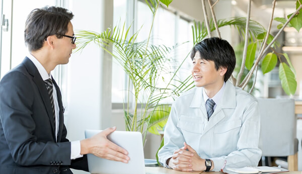 面談時に現在のお悩みや事業の状況をお伺いします。概要のヒアリングを中心とし、無理なご提案は行いません。